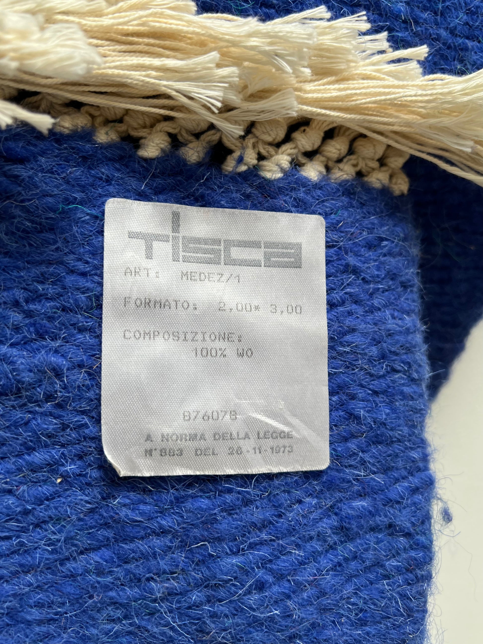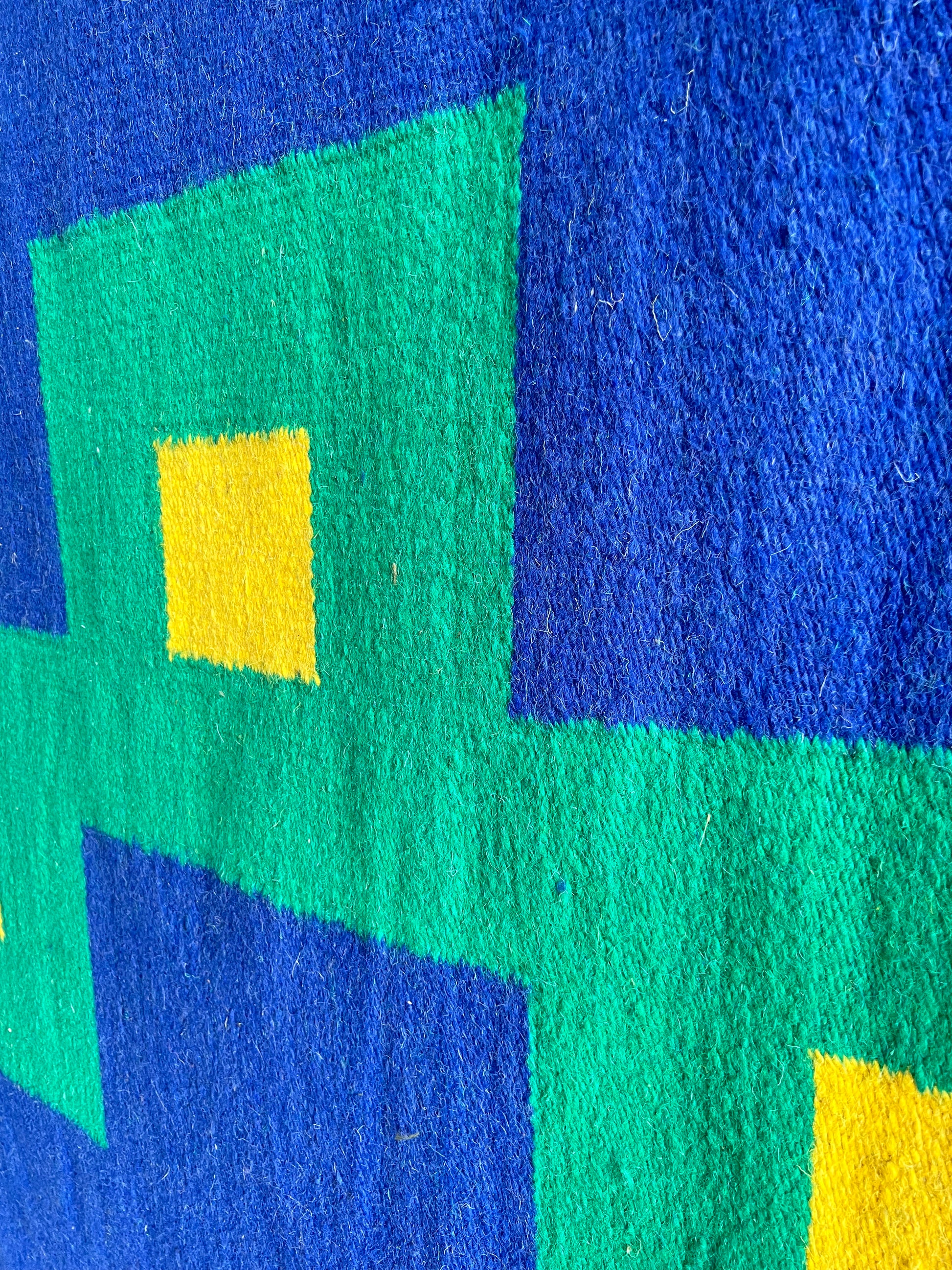 "Medez" by Tisca Italian Carpet in Pure Blue and Yellow Wool, 1973