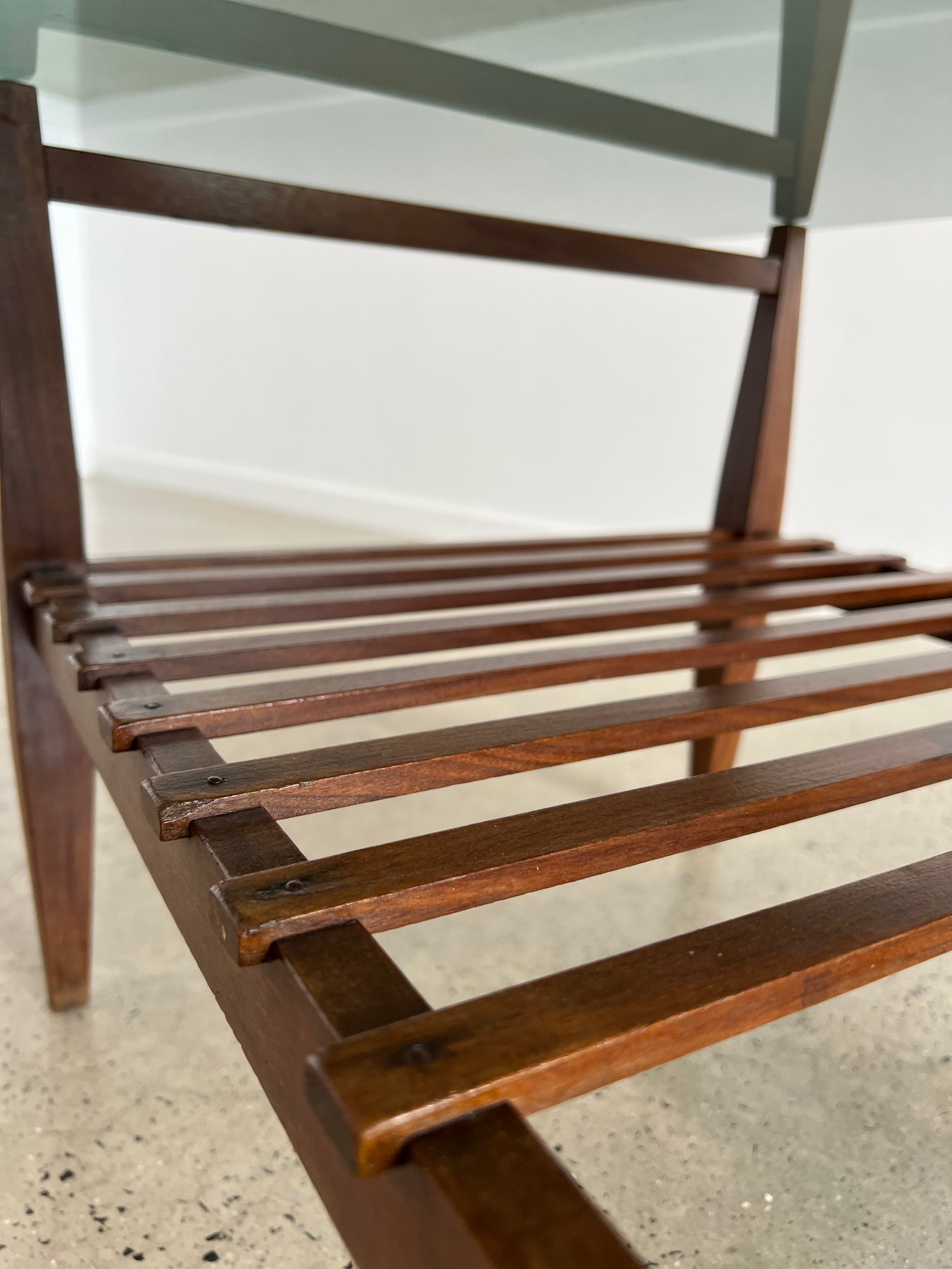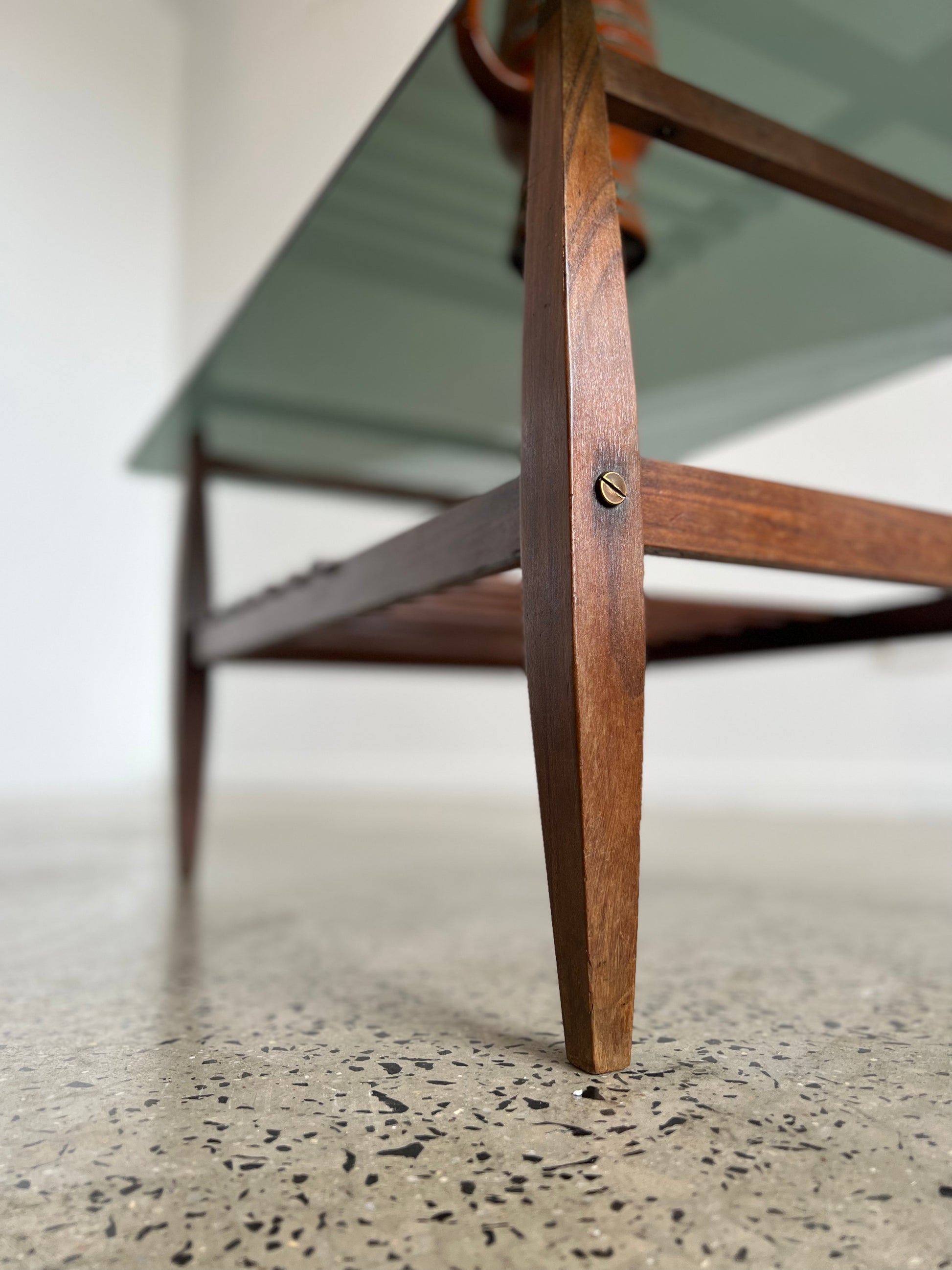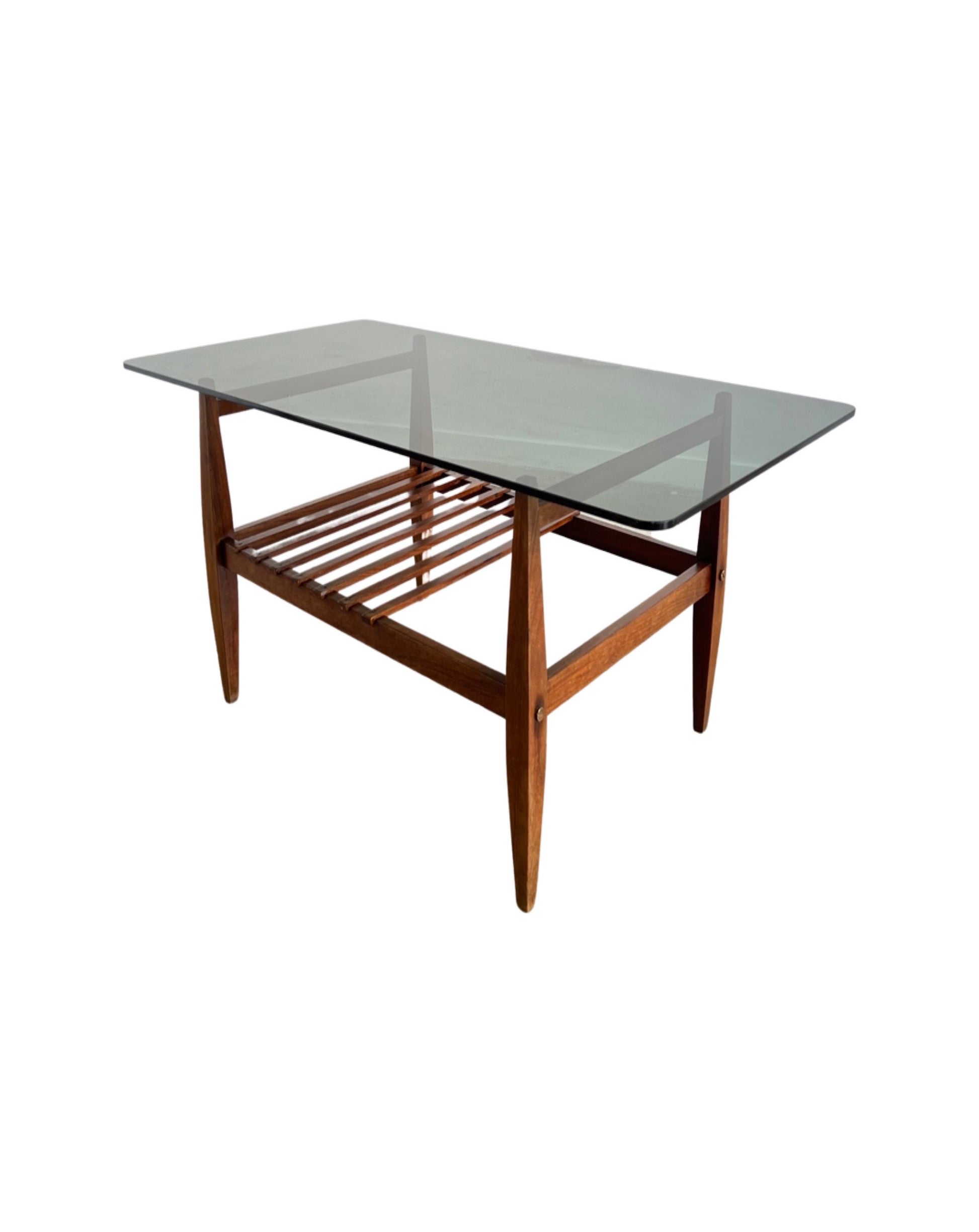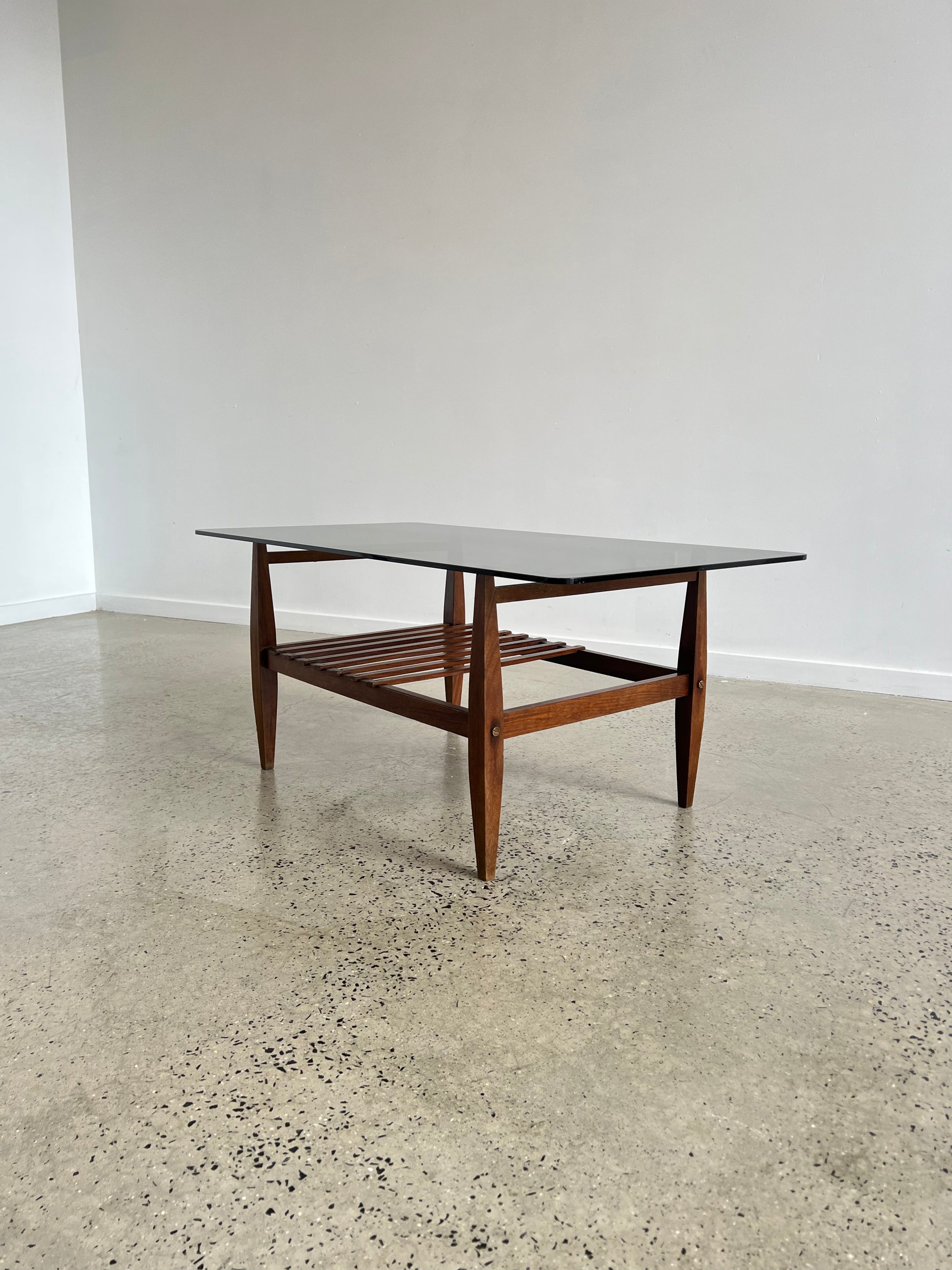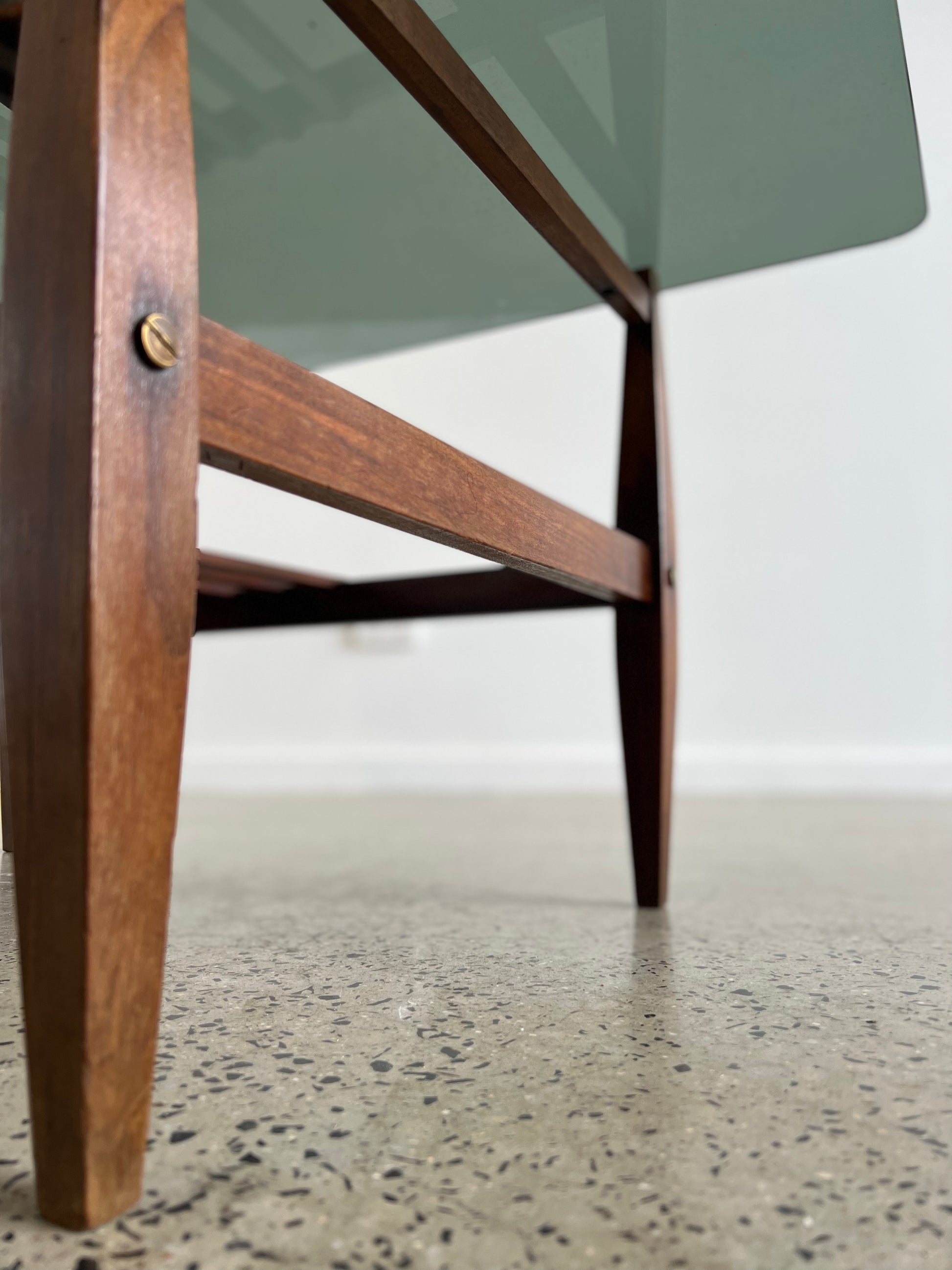 Mid Century Modern Italian Smoked Glass and Teak Base Coffee Table, 1960s