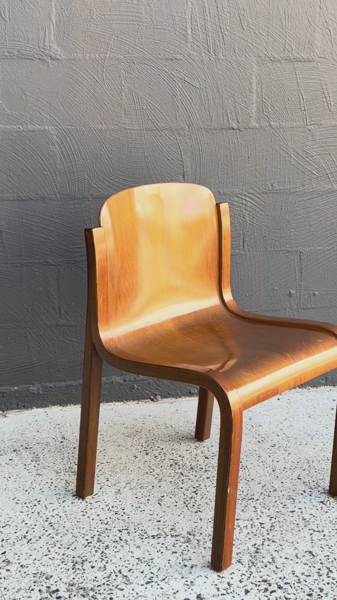 Designed in the 1970s by Carlo Bartoli for Tisettanta, the Mito chair is a celebrated example of Italian industrial design. The chair is crafted from a single bent sheet of plywood, giving it both lightness and strength, while maintaining a fluid sculptural form. Its continuous curves and warm beech finish highlight Bartoli’s ability to merge technical innovation with aesthetic simplicity.