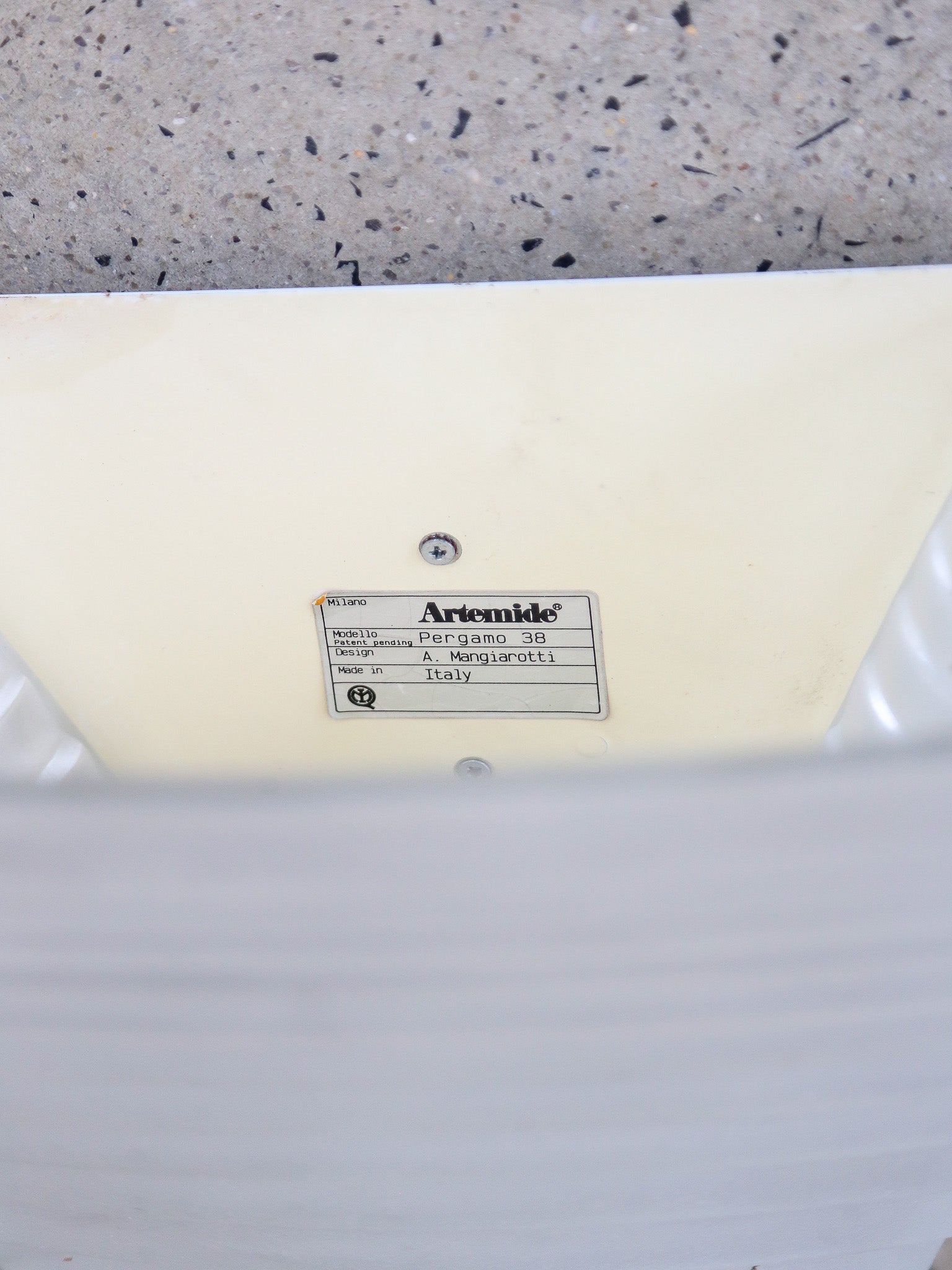 These elegant Pergamo 38 sconces were designed by Angelo Mangiarotti for Artemide in the 1970s, a refined example of Italian mid-century lighting. Crafted from opaline Murano glass with a metal frame, they reflect Mangiarotti’s mastery of material and form.