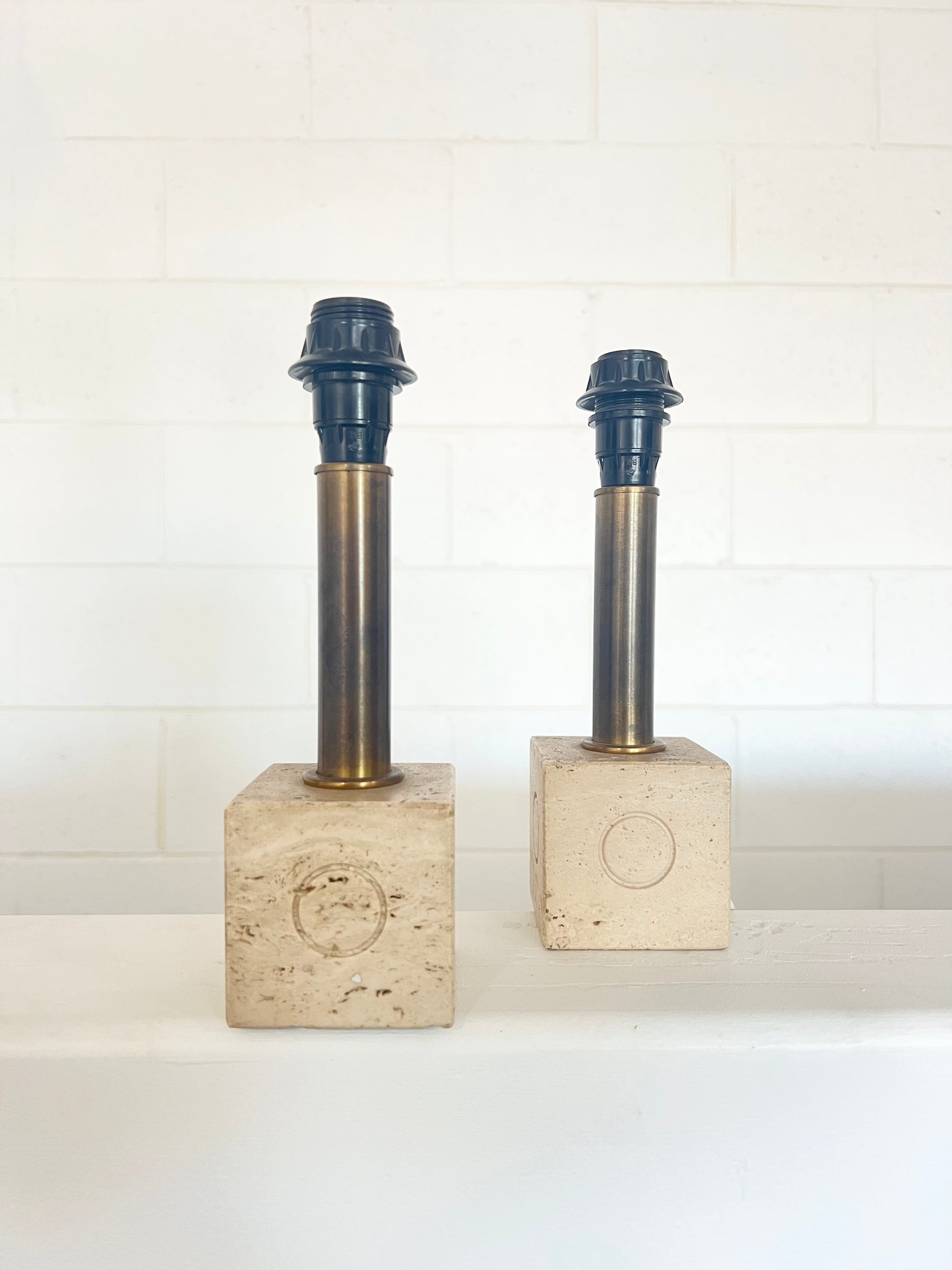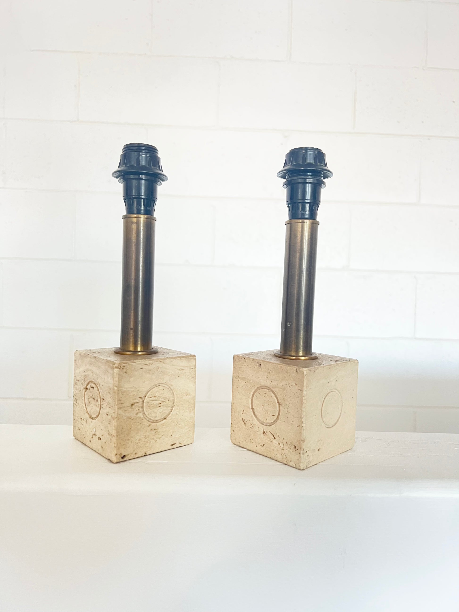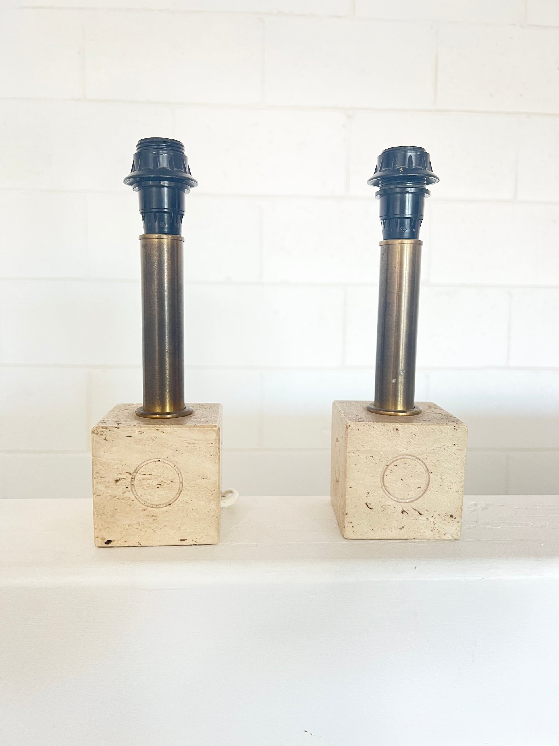 Pair of Travertine Base and Brass Square Table Lamps by Fratelli Mannelli, 1960s