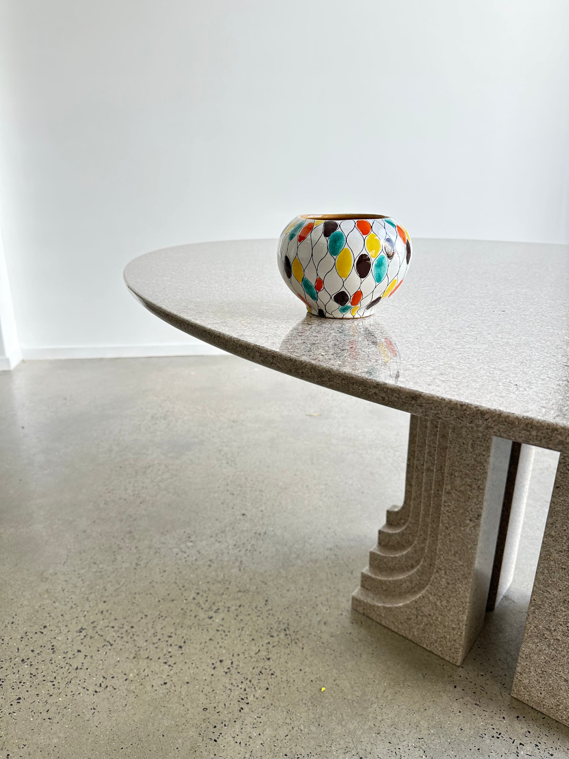 This Rometti ceramic works beautifully as a standalone decorative object or as part of a curated collection of Italian ceramics. Its vibrant palette and sculptural simplicity make it a versatile accent for modern, eclectic, or mid-century interiors. Each color segment captures light differently, enhancing the tactile and visual appeal of the piece.