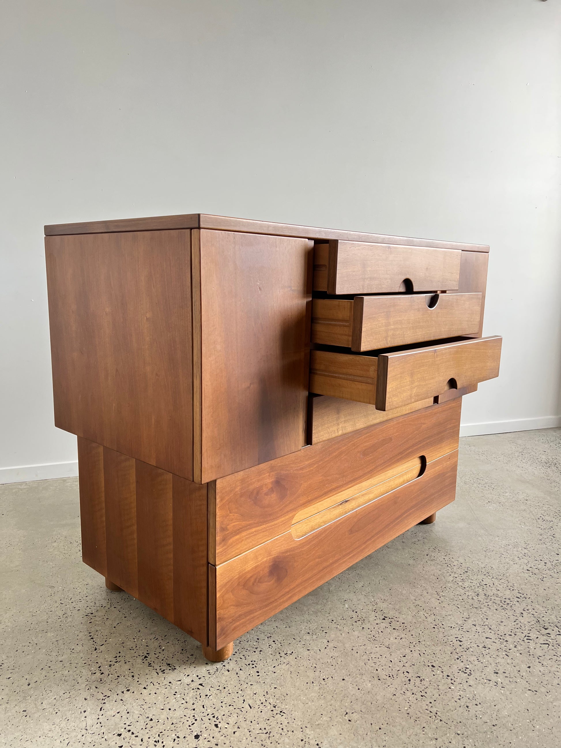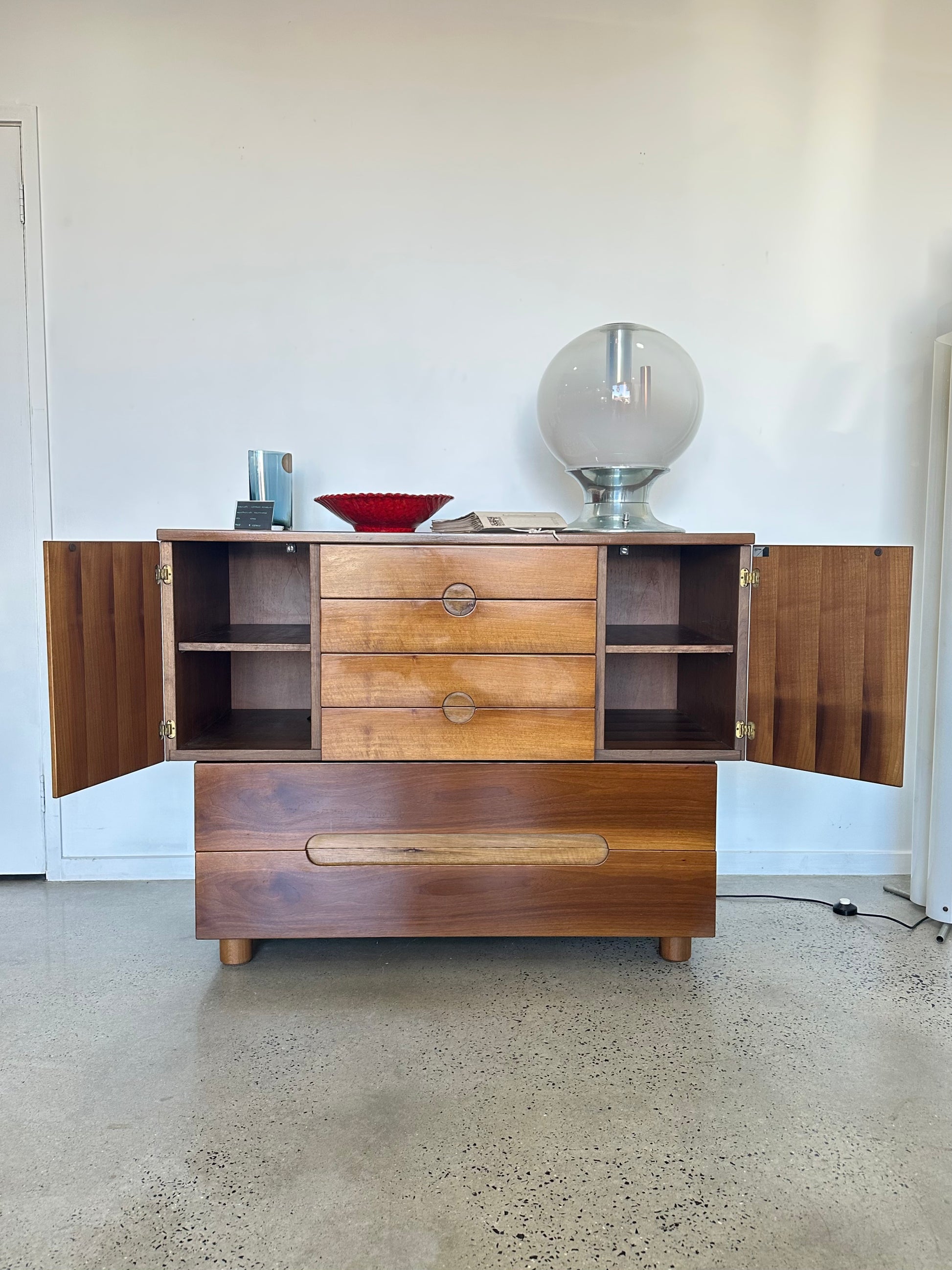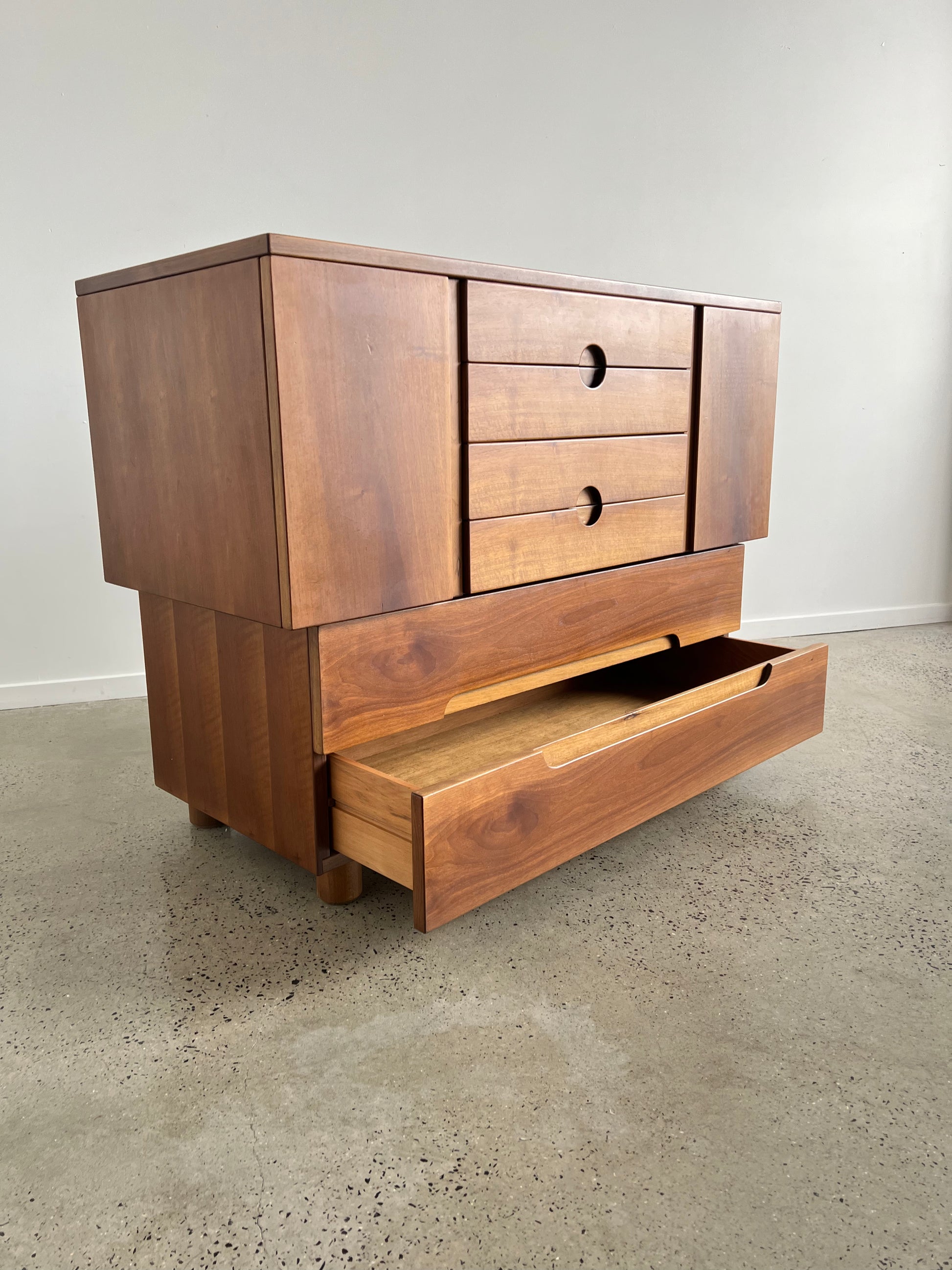 With clean proportions, minimalist pulls and solid walnut construction, the Serena reflects Michelucci’s rationalist design language. Functional yet refined, its six-drawer layout emphasises practicality while the form embodies the clarity and durability of post-war Italian modernism.