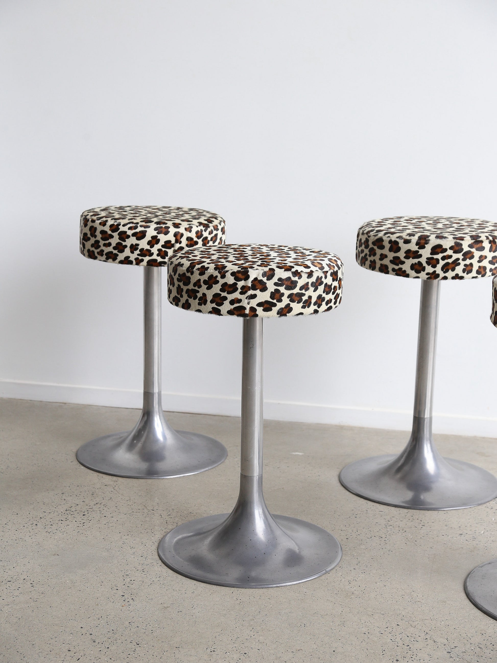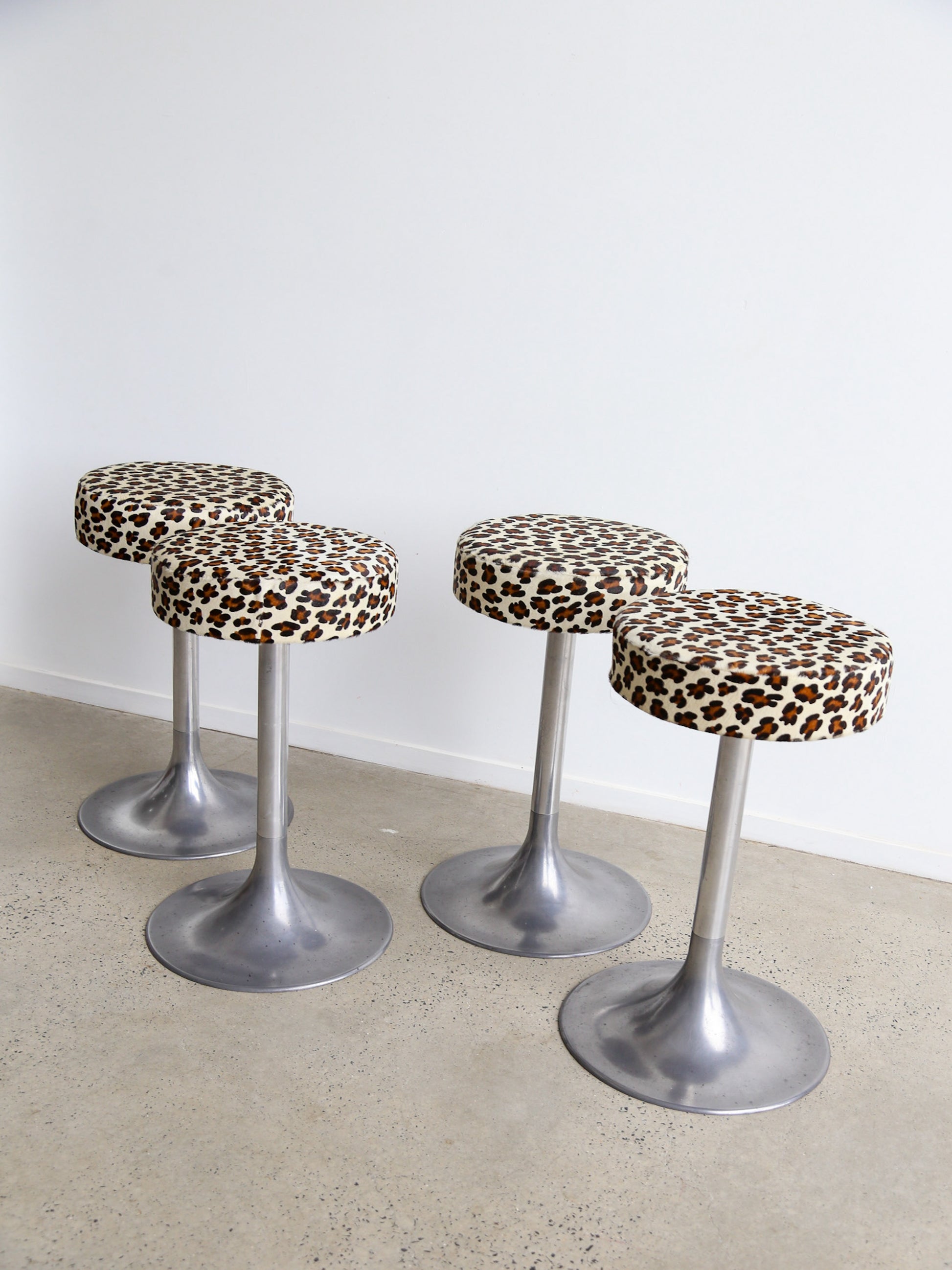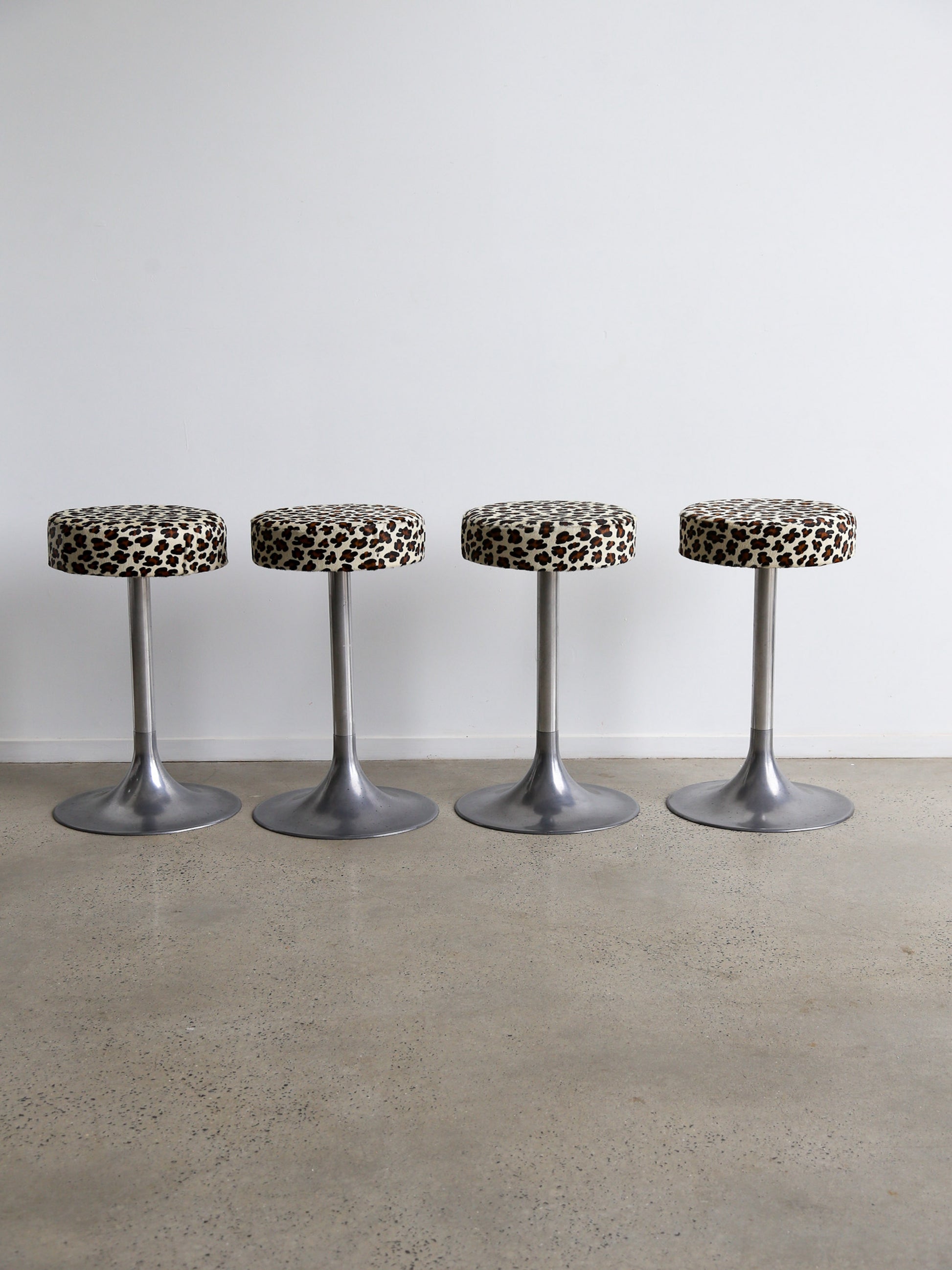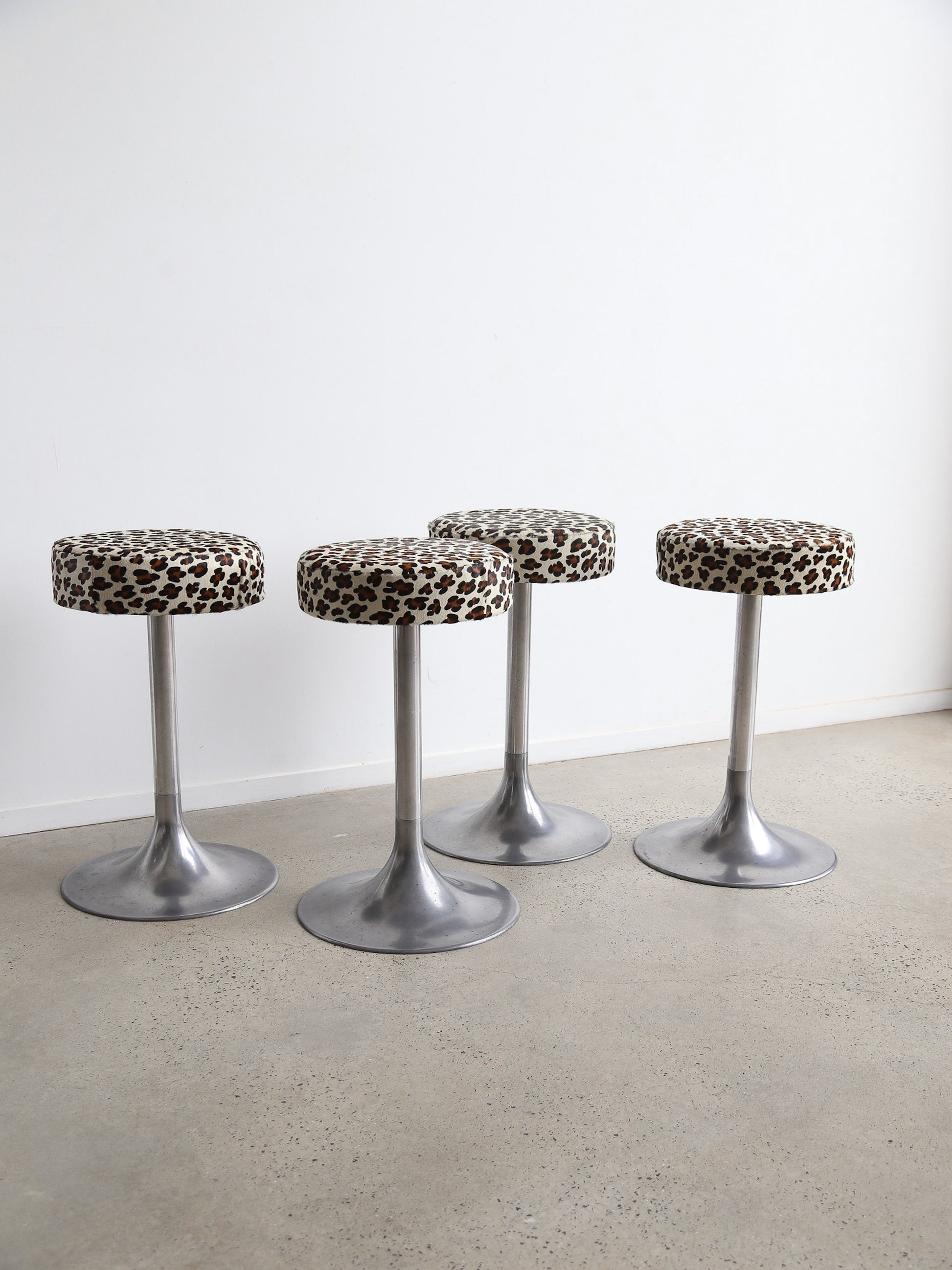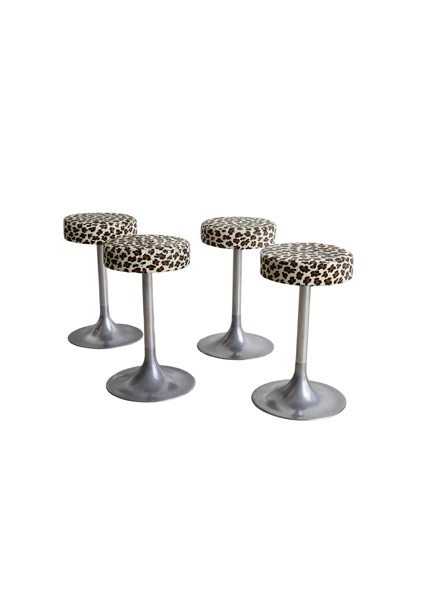 Set of four Italian Cavallino tulip stools with aluminium frame 1960s
