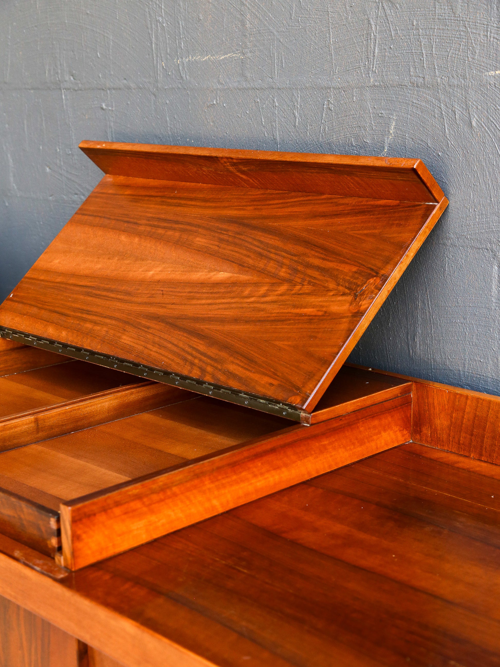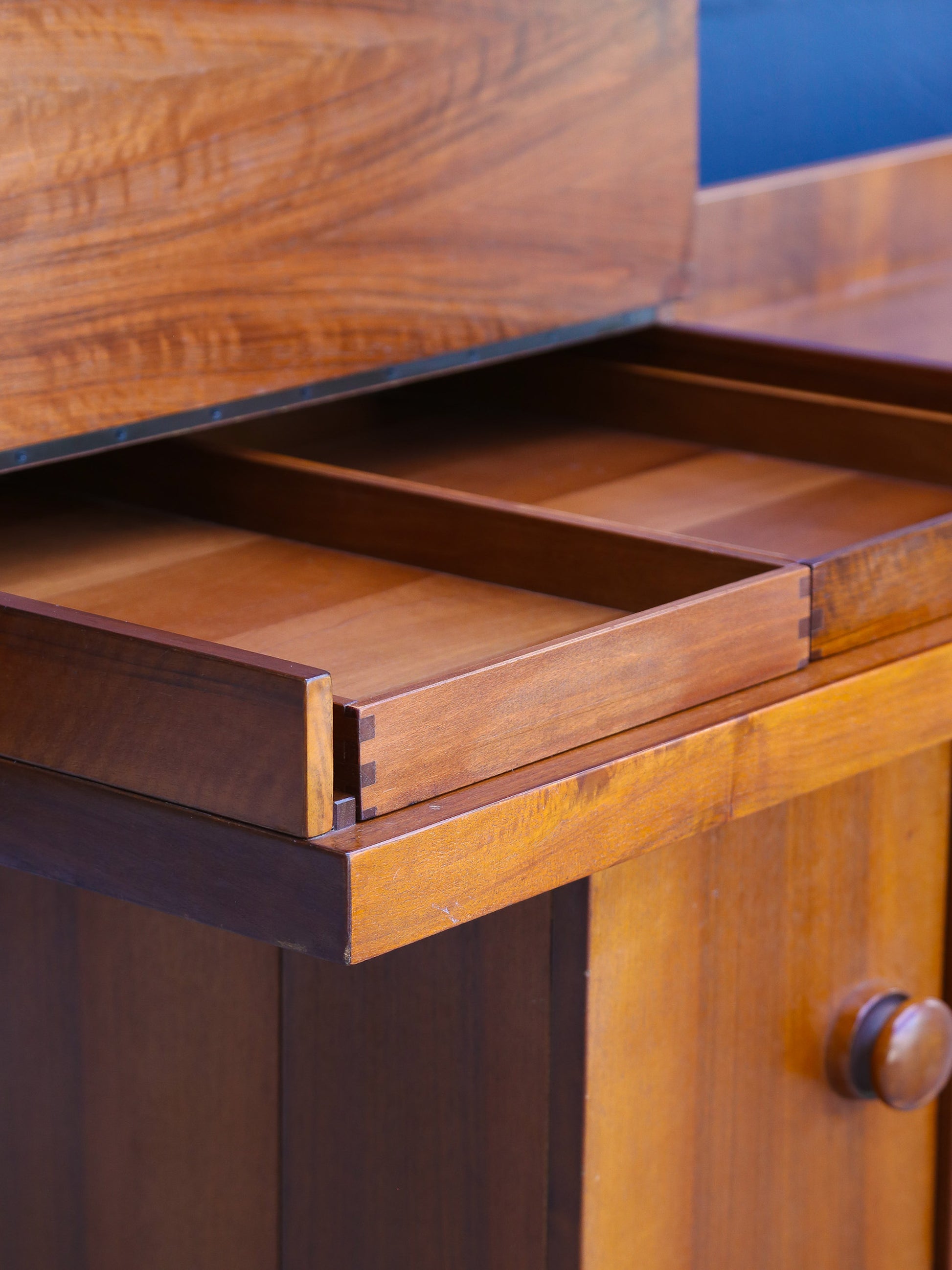 Materials & Techniques: Walnut wood, hand-crafted joinery, flip-top compartments, pull-out trays