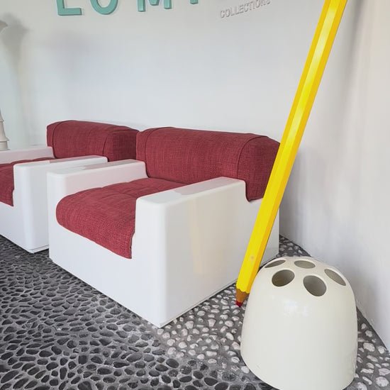 During the 1960s and 70s, fiberglass became the material of choice for designers who embraced lightweight durability and futuristic forms. These chairs highlight the ingenuity of the era, concealing extractable beds within their structure without compromising elegance. With their dual purpose, they are a prime example of the functional yet visionary approach of Italian Space Age design.