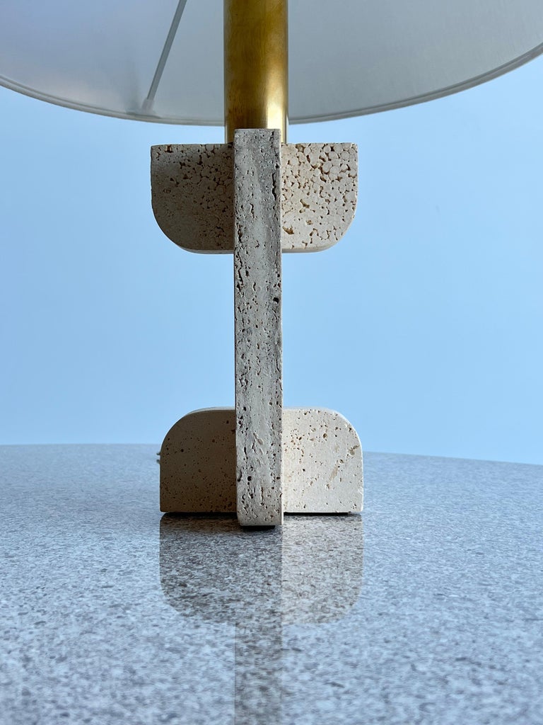Fratelli Mannelli pieces are noted for quality craftsmanship and architectural presence. The travertine base adds tactile depth while the brass stem introduces warmth and refinement—decorative and functional in equal measure.