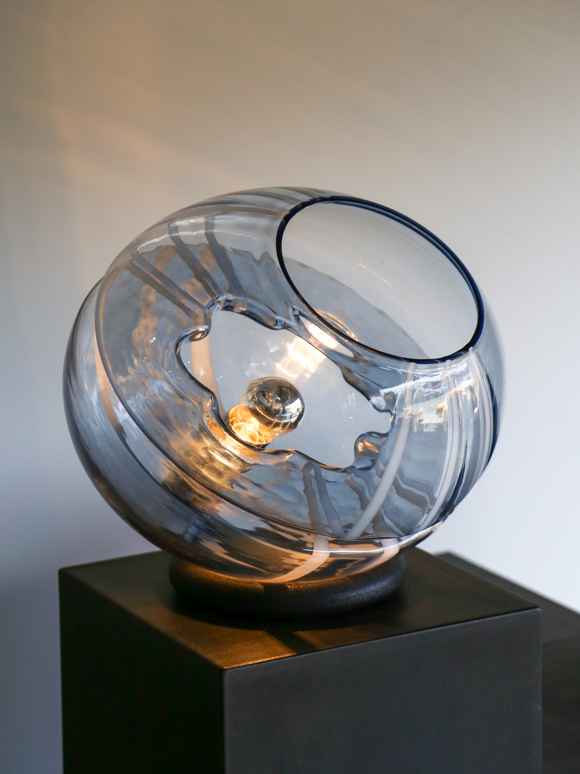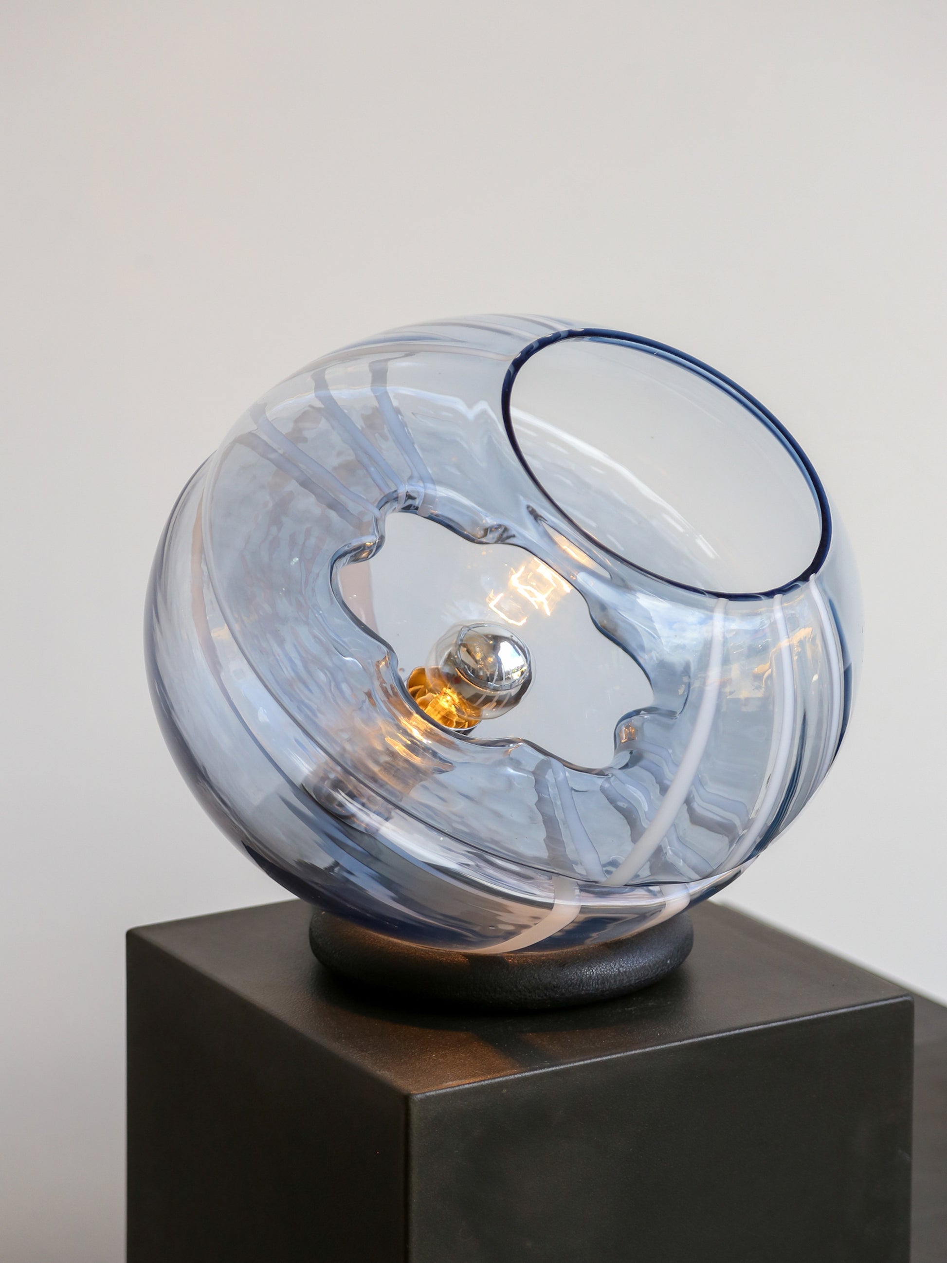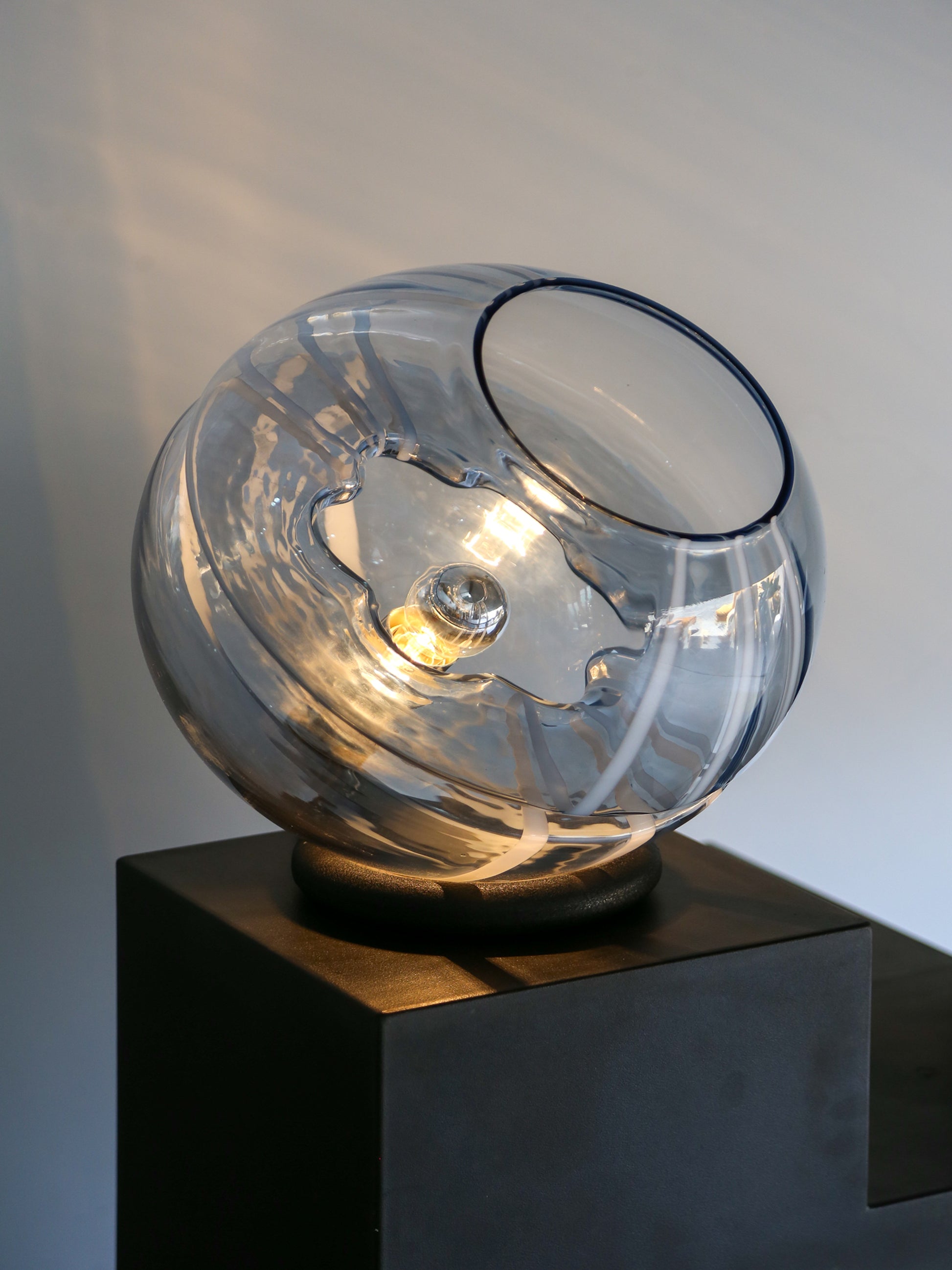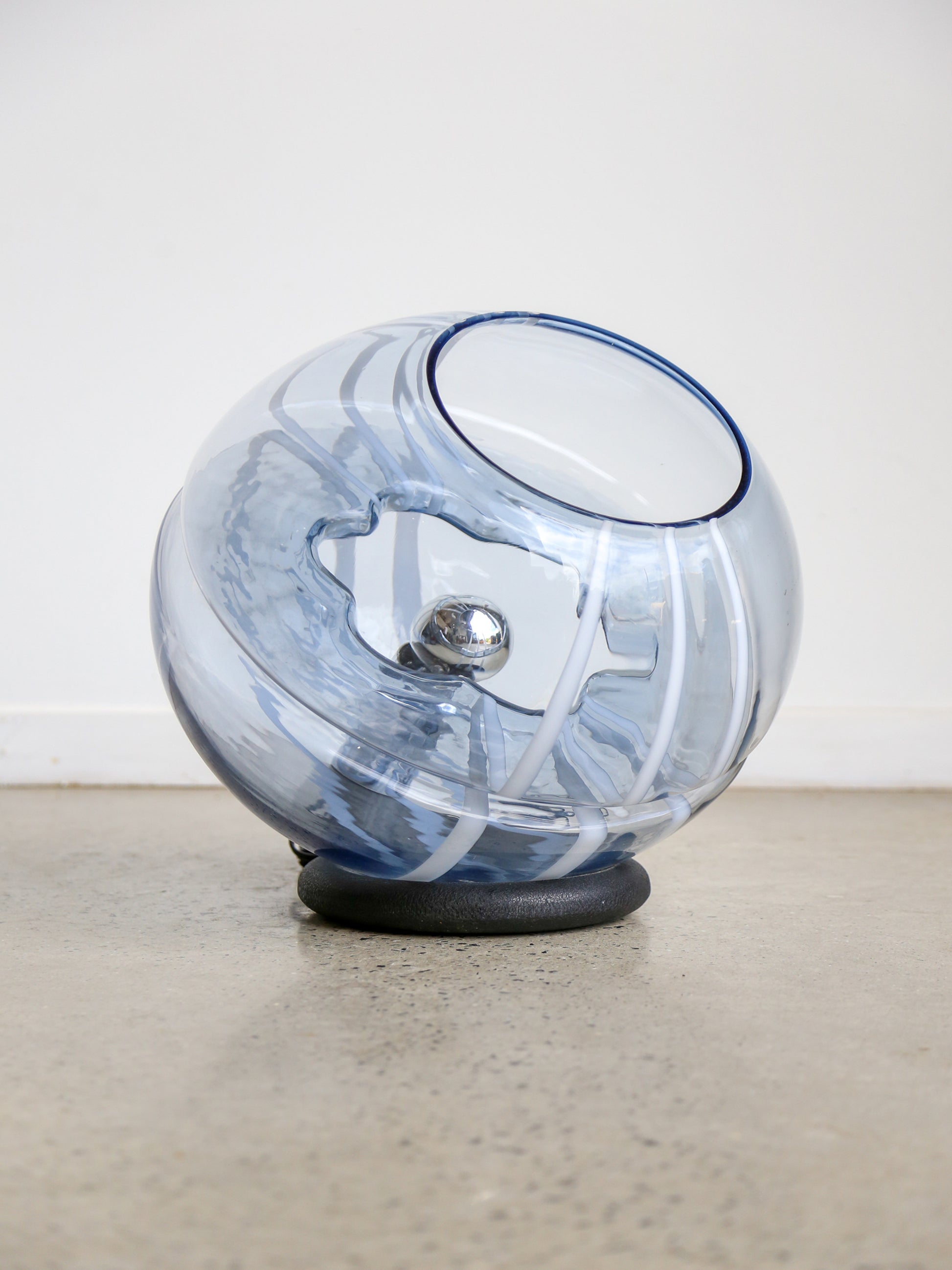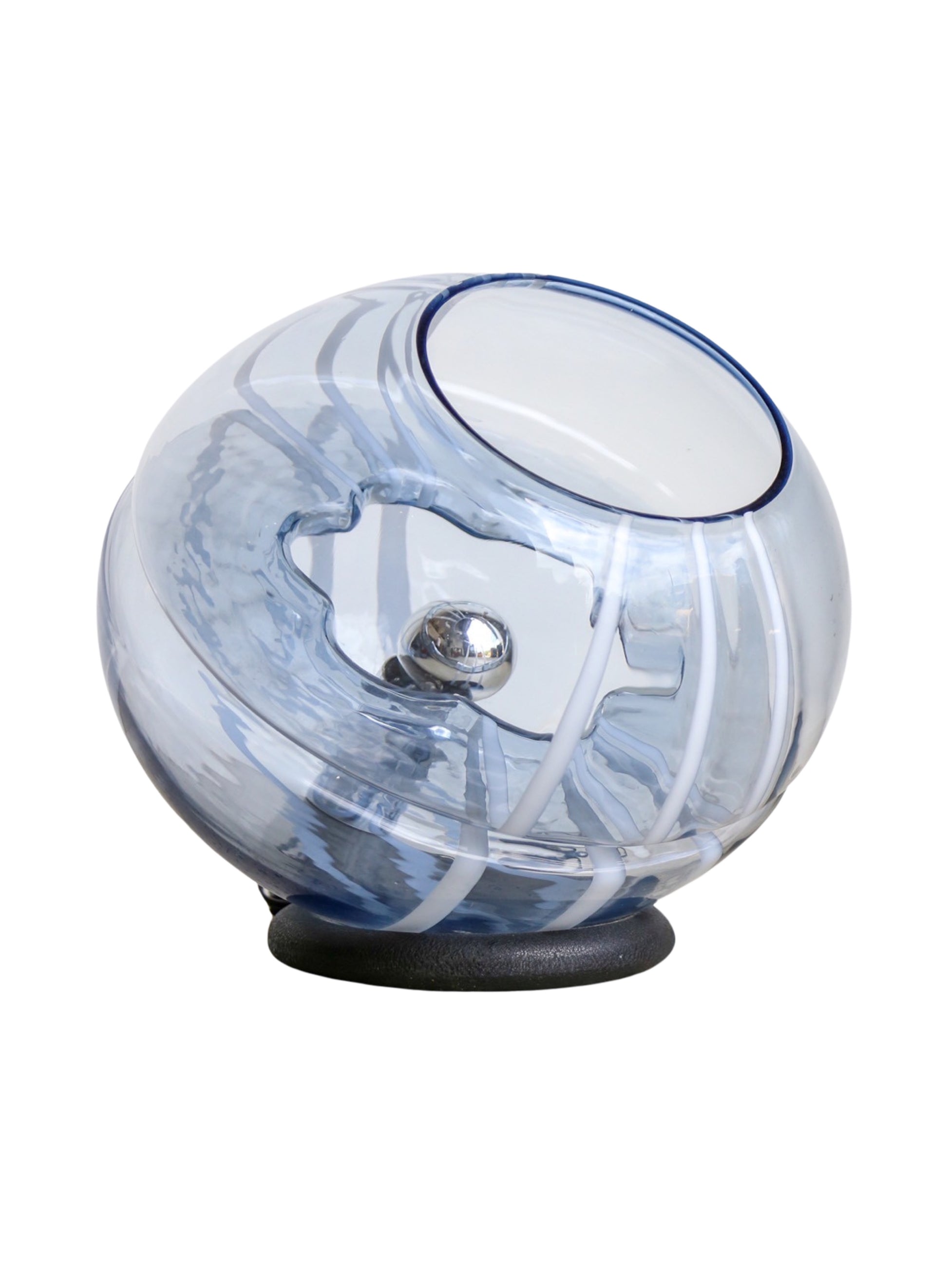 Toni Zuccheri Round Murano Glass Table Lamp with White Lines