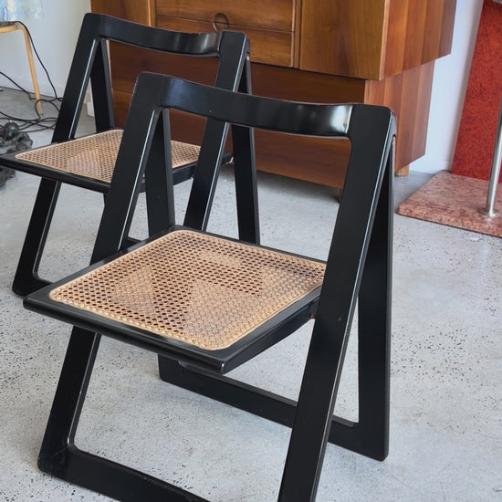 Mid-Century Folding Chairs in Lacquered Beech and Vienna Straw