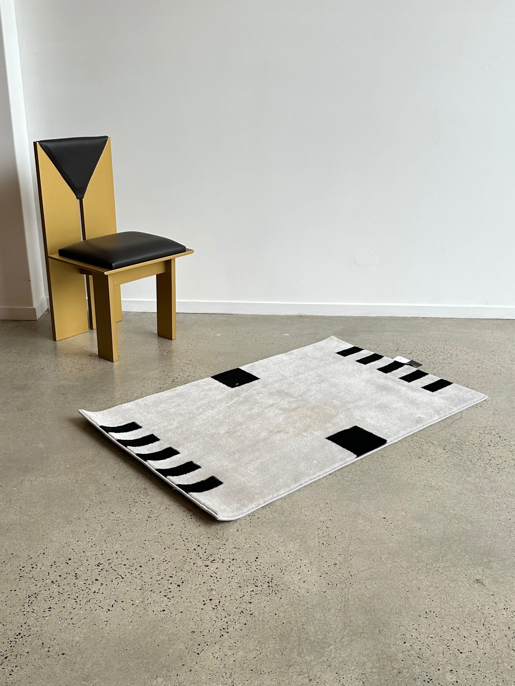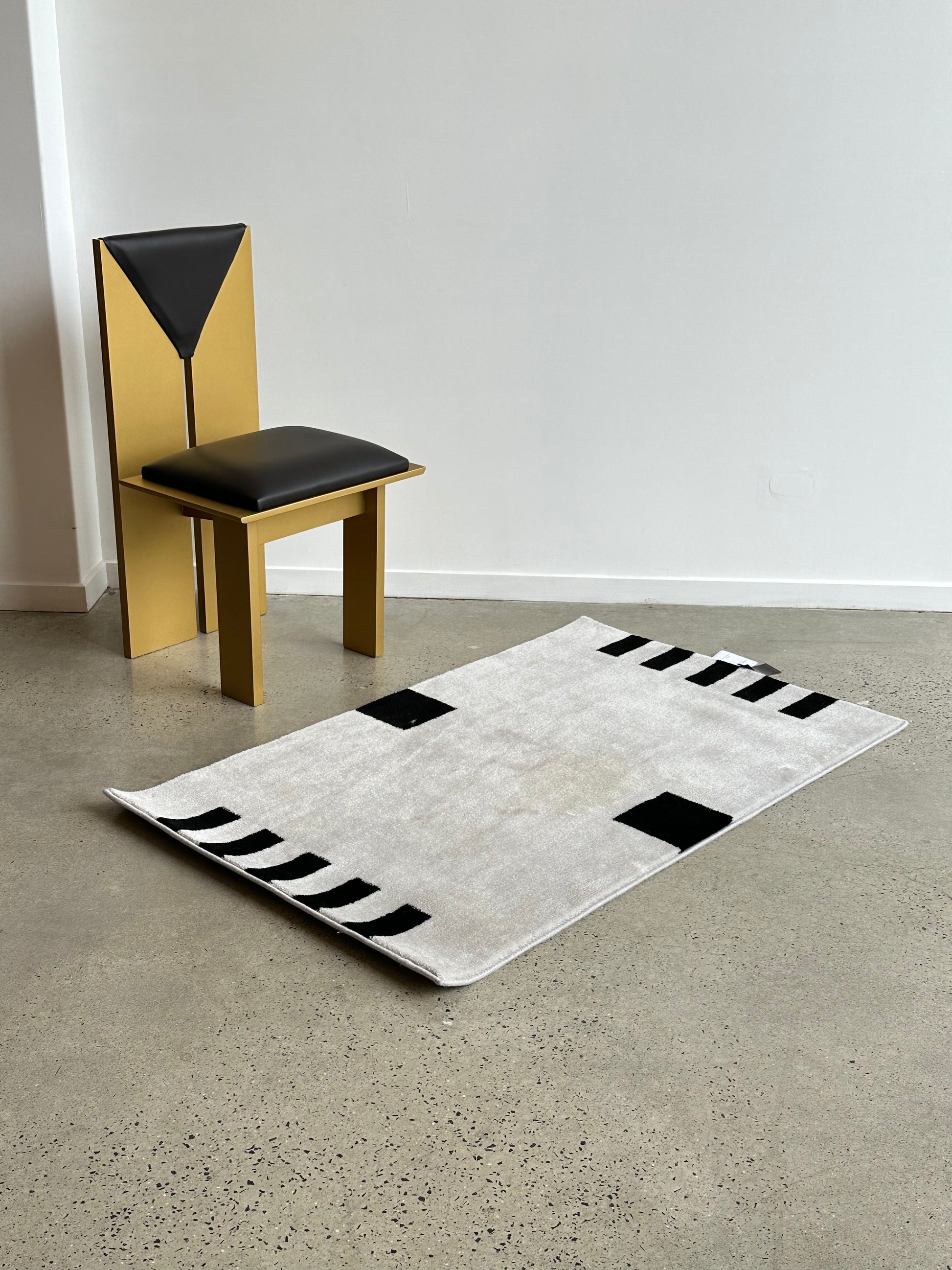 This modern cotton rug titled “Tros” was designed by Dieter Sieger for Gebhan Edition in the 1990s. Known for his clean lines and functional approach to design, Sieger created a bold piece that combines minimalism with strong geometric forms.